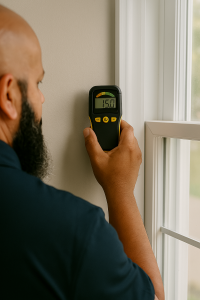 Our moisture meter helps identify hidden dampness within walls, floors, ceilings, and around plumbing fixtures, often before discoloration or damage appears. By detecting moisture early, we can pinpoint areas that may need further evaluation — especially in bathrooms, kitchens, basements, or around windows and roofs.